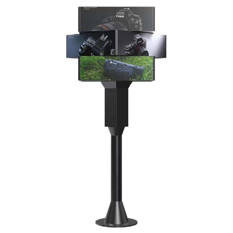 The three-layer four-sided LED rotating mechanical display is an innovative visual device that integrates mechanical engineering, LED display technology, and intelligent control. Its unique Rubik's Cube-inspired design and multi-layer rotating structure break the limitations of traditional flat-panel displays, creating a dynamic three-dimensional visual experience. Each face can rotate independently or in coordination, working in tandem with high-brightness LED dot matrix to achieve information presentation and artistic expression in three-dimensional space.